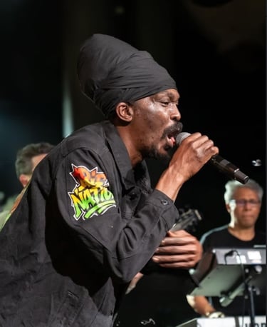 His music is a vibrant mix of love songs, social justice anthems, and spiritual meditations—always delivered with passion and purpose. On stage, he captivates audiences with high-energy performances and a message that uplifts and empowers.
